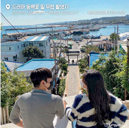 경상북도 포항시에 위치한 드라마 '동백꽃 필 무렵' 촬영지는 드라마 속 주인공 동백이(공효진 분)가 운영하는 술집과 일본인 가옥거리 등 많은 볼거리가 준비 되어 있습니다. 드라마 속 마을을 둘러보고 추억을 쌓아보세요 !